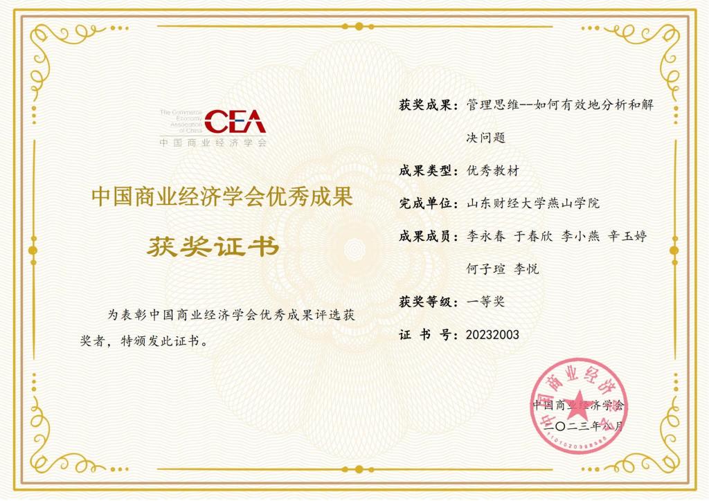 在剛剛結(jié)束的中國商業(yè)經(jīng)濟(jì)學(xué)會2023年度優(yōu)秀成果評獎(jiǎng)活動(dòng)中,由6776永利集團(tuán)院長李永春教授主編的教材《管理思維---如何有效地分析和解決問題》榮獲優(yōu)秀教材一等獎(jiǎng)。同時(shí),在8月份進(jìn)行的山東省第十五屆大學(xué)生科技節(jié)活動(dòng)中,6776永利集團(tuán)李永春、劉金煒指導(dǎo)的學(xué)生組榮獲山東省大學(xué)生智慧企業(yè)管理創(chuàng)新設(shè)計(jì)大賽數(shù)字商業(yè)企業(yè)模擬經(jīng)營對抗賽道一等獎(jiǎng)。另外,在前不久公布的山東省教育科學(xué)研究院組織的2023年度山東省教育教學(xué)研究課題...